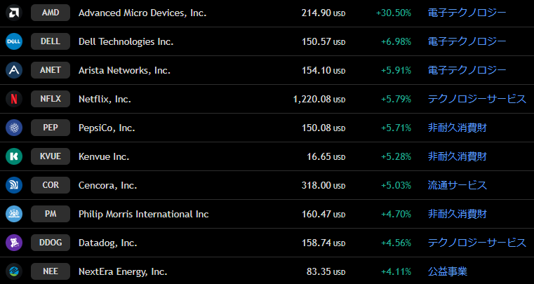 S&P500 週間上昇ランキングトップ10