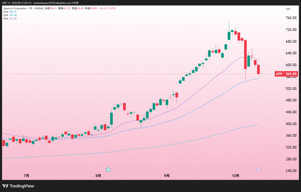 ↓↓アップラビン(APP)の株価チャート(日足)