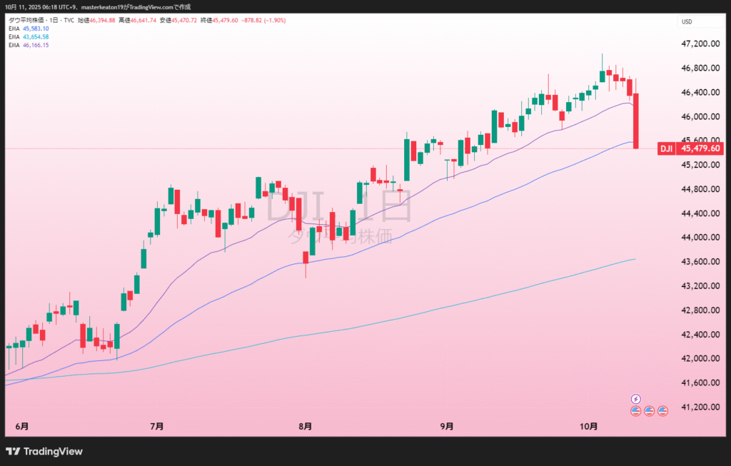 - ダウは-2.7%(終値:45479.60)