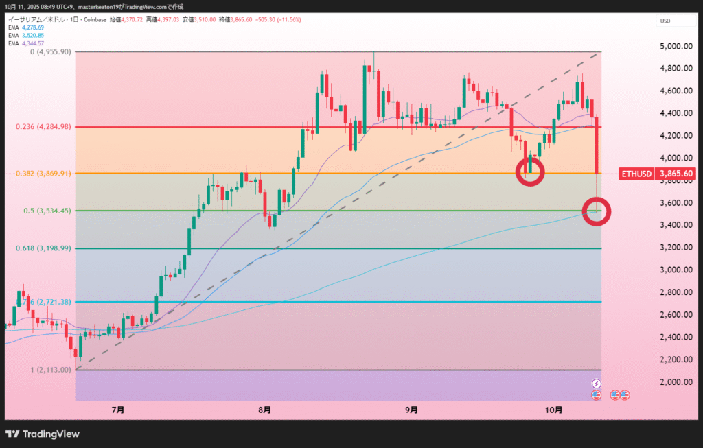 こちらは50日移動平均線にタッチしそうなところまで下落してしまいました。ここで支えられるかが見ものですね。