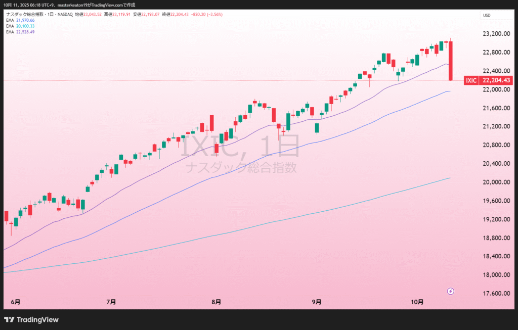 - ナスダックが-2.5%(22204.43)
