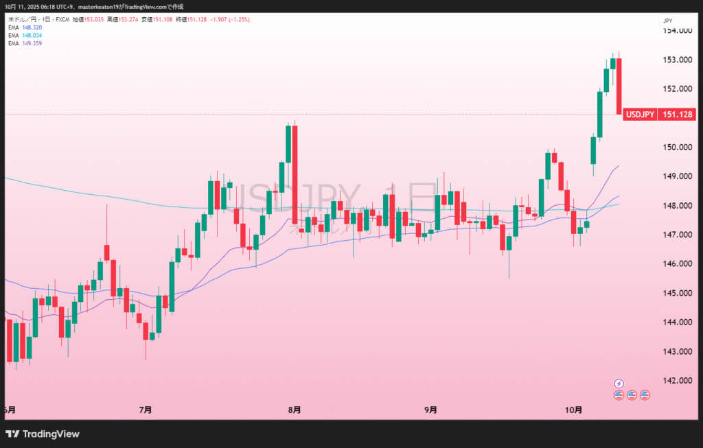 ドル円はトランプさんのちゃぶ台返しの前に、日本の女性総理が誕生かということでいっきに153円までいきました。円安圧力がプチ噴火したみたいな感じです。