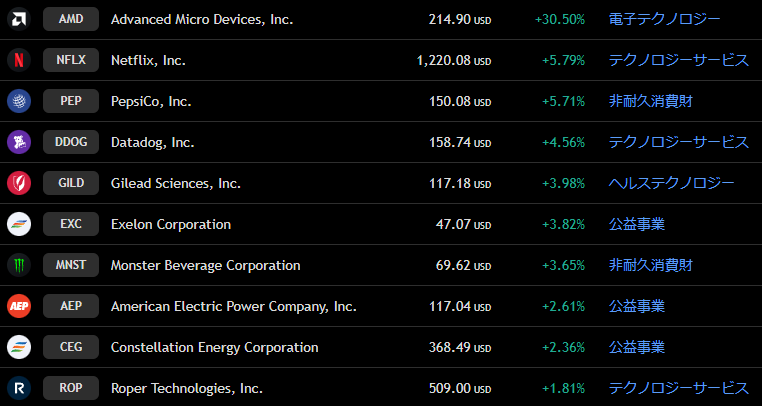 ナスダック 週間上昇ランキングトップ10