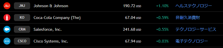 ダウ 週間上昇ランキングトップ10