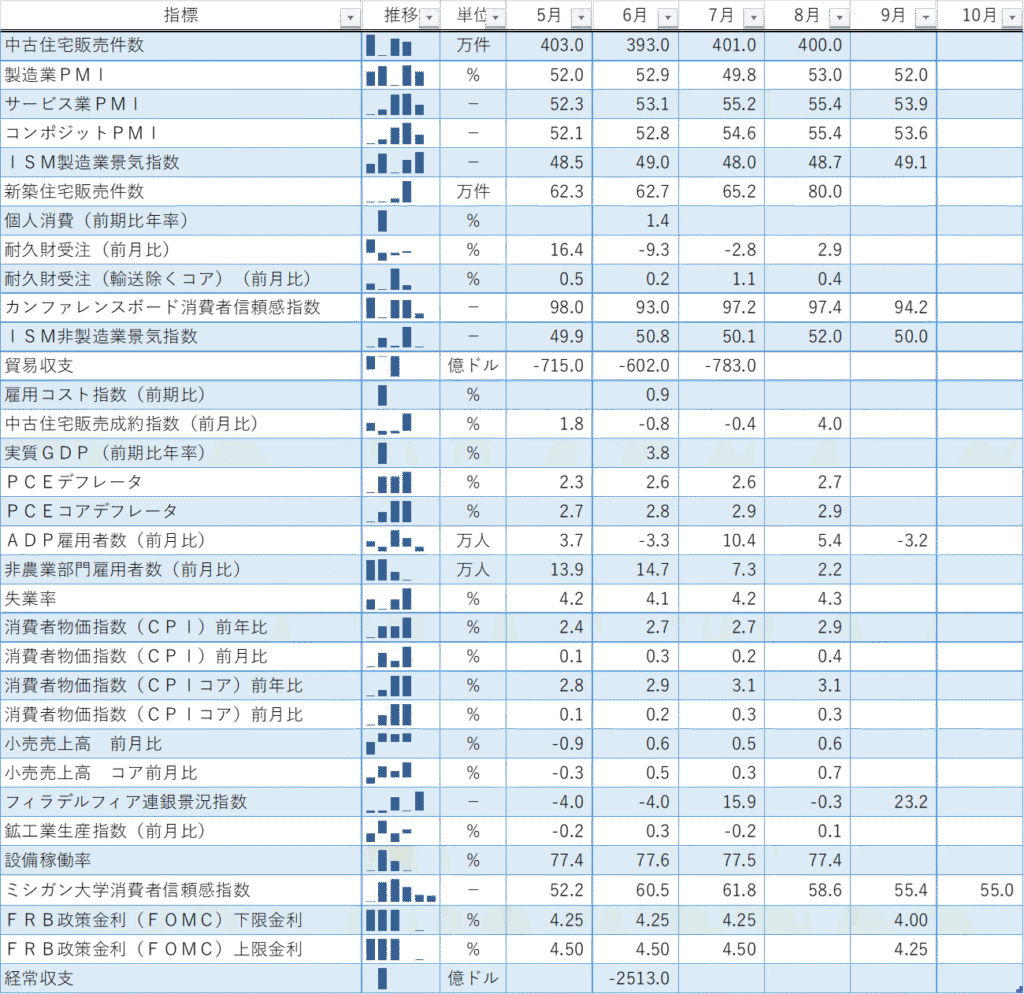 過去の指標からながめていくとなんとなく米経済全体の流れが見え、最新ニュースの意味がより深く理解できるようになります。