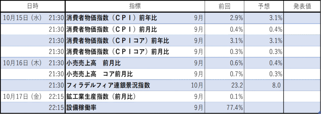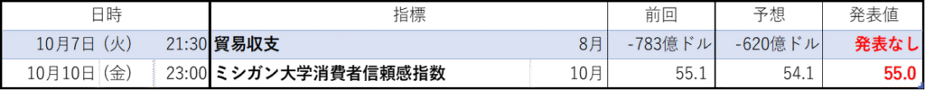 今週のイベント結果(経済指標の結果)