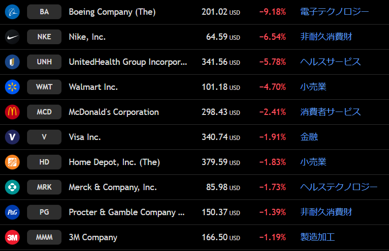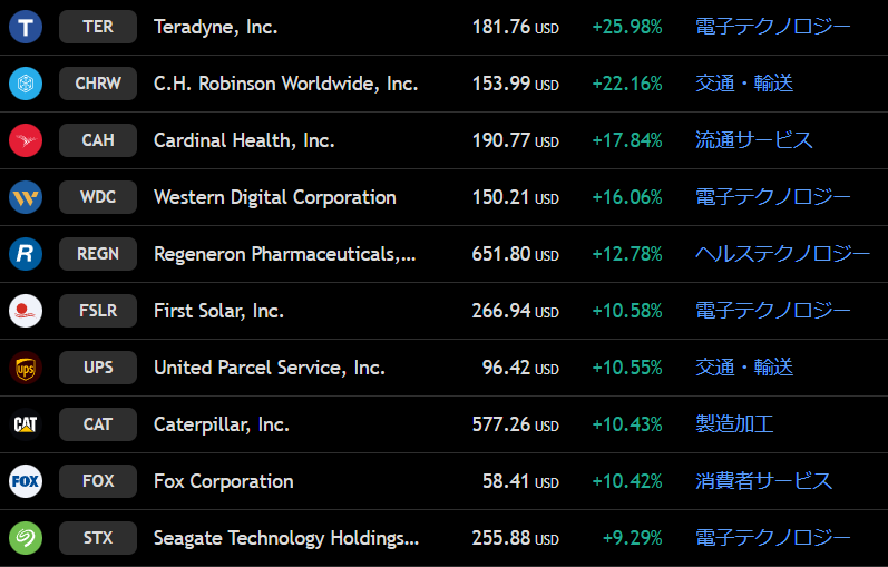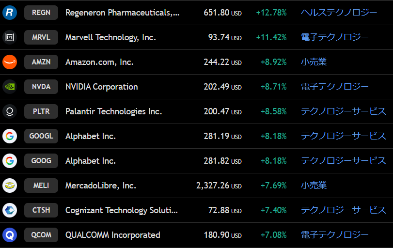 上昇率3位のエヌビディア(NVDA)は毎日が強いガイダンスの発表で株価上昇しました。