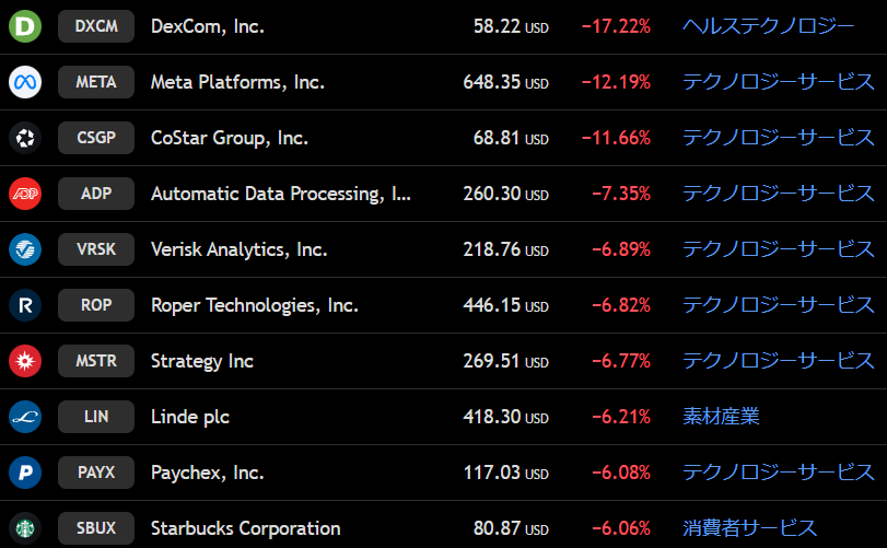 かなり期待してましたが、メタの決算が利益大幅マイナス、株価も大きく下落し、決算のよかったマイクロソフトも下げ、相場の雰囲気を悪化させました。(言っちゃ悪いけど)