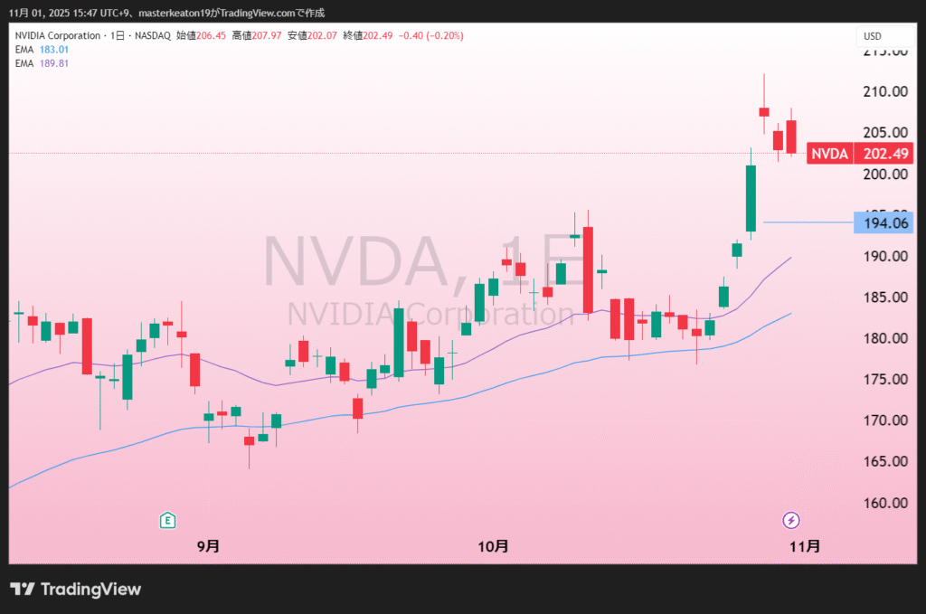 ↓↓エヌビディア(NVDA)の株価チャート(日足)
