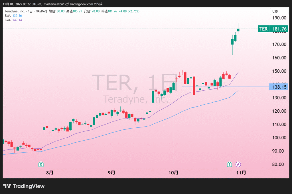こちら、半導体チップの自動テスト装置(ATE)の絶対王者であり、協働ロボット(コボット/AMR)のオートメーション事業もあります。AI/5G/EVによる半導体市場の構造的成長 と、ロボット事業の急成長 という二大成長エンジンを兼ね備え、安定した長期的な成長が期待されます。