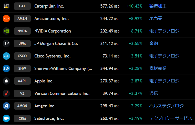 キャタピラ(CAT)、アマゾン(AMZN)は好決算で上昇しましたが