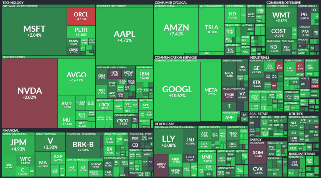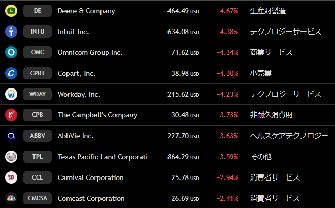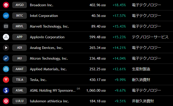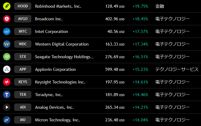 そして上位をしめたのはすべてテクノロジー銘柄となり、AIバブルではないというのが改めて意識されたのではと思います。