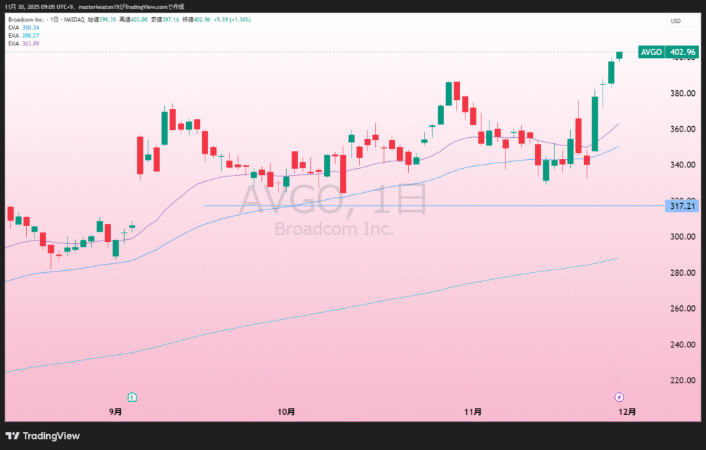 ↓↓ブロードコム(AVGO)の株価チャート(日足)