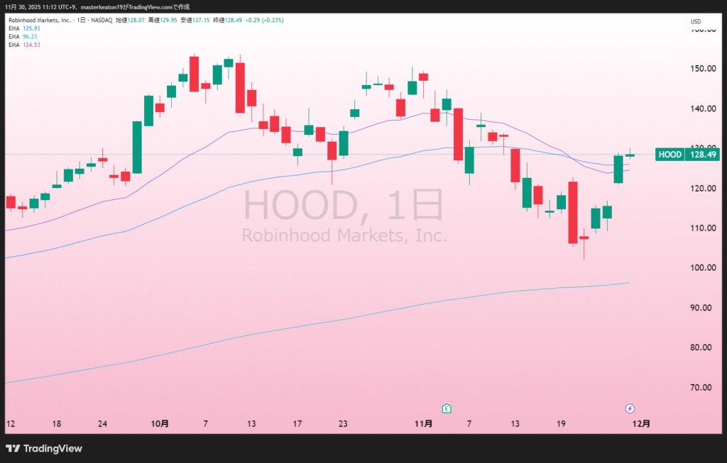 ↓↓ロビンフッド(HOOD)の株価チャート(日足)