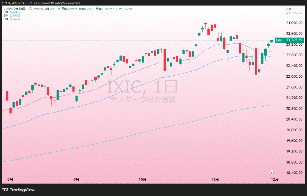 ただ、上昇といっても11月下落の取り戻し的な動きでしたので、そうなるよなという気持ちで見ていた方も多かったのではと思います。
