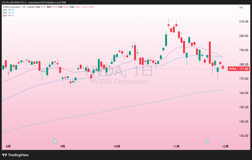 ↓↓エヌビディア(NVDA)の株価チャート(日足)