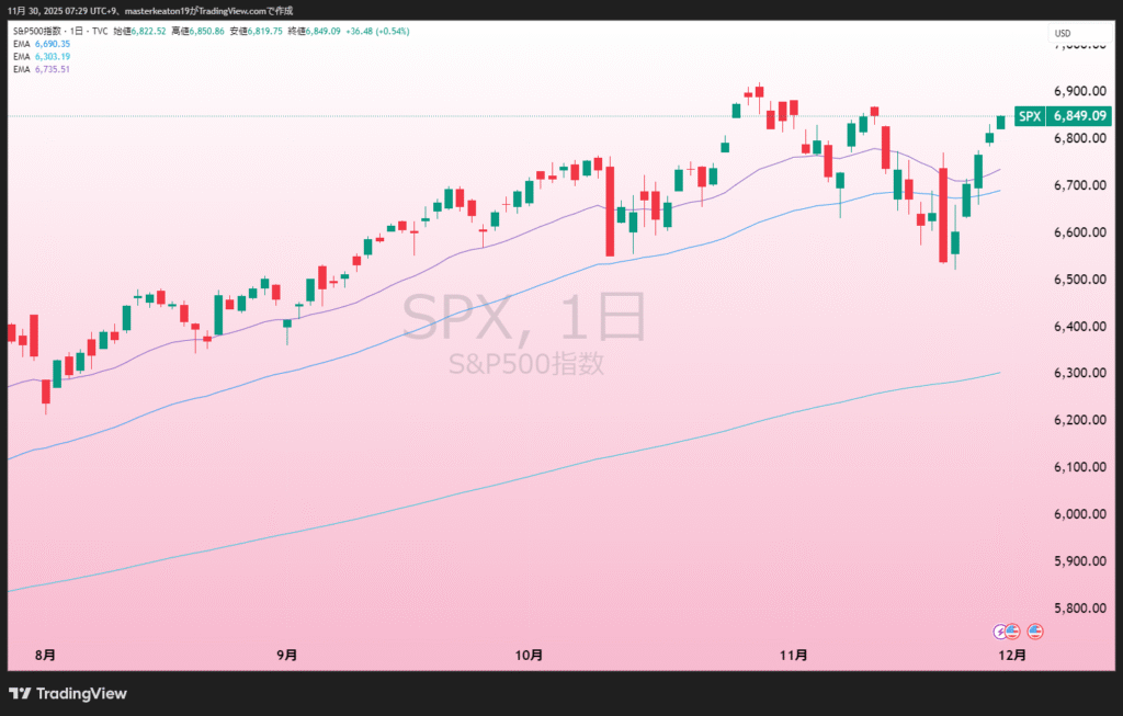 先週はブラックフライデーを控えて特別大きなニュースはなかったのですが、ここにきて株の上昇が