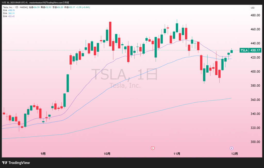 ↓↓テスラ(TSLA)の株価チャート(日足)