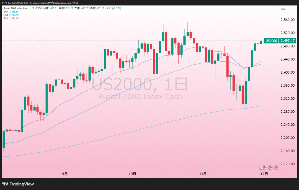 まだ、S&P500は10月の高値を超えれてません。12月に超えないとはとても思えないので来週以降も期待していいのではと思います。