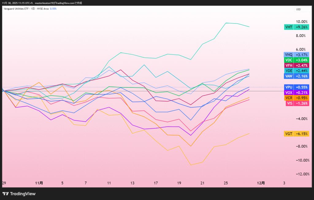 おっと!VGT(情報技術)が最下位とは。。市場のギャップが発生してるのでこれから楽しみですね!