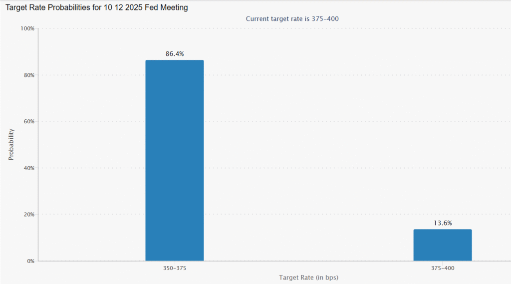 12月FOMCでの利下げ確率が先週は86%に上昇しております。