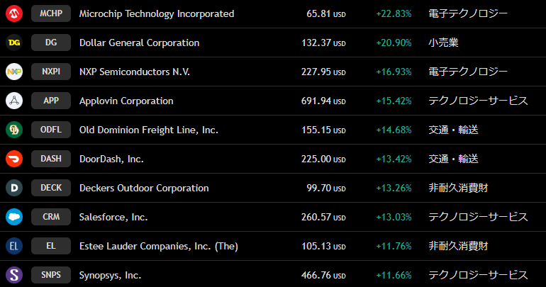 S&P500 週間上昇ランキングトップ10