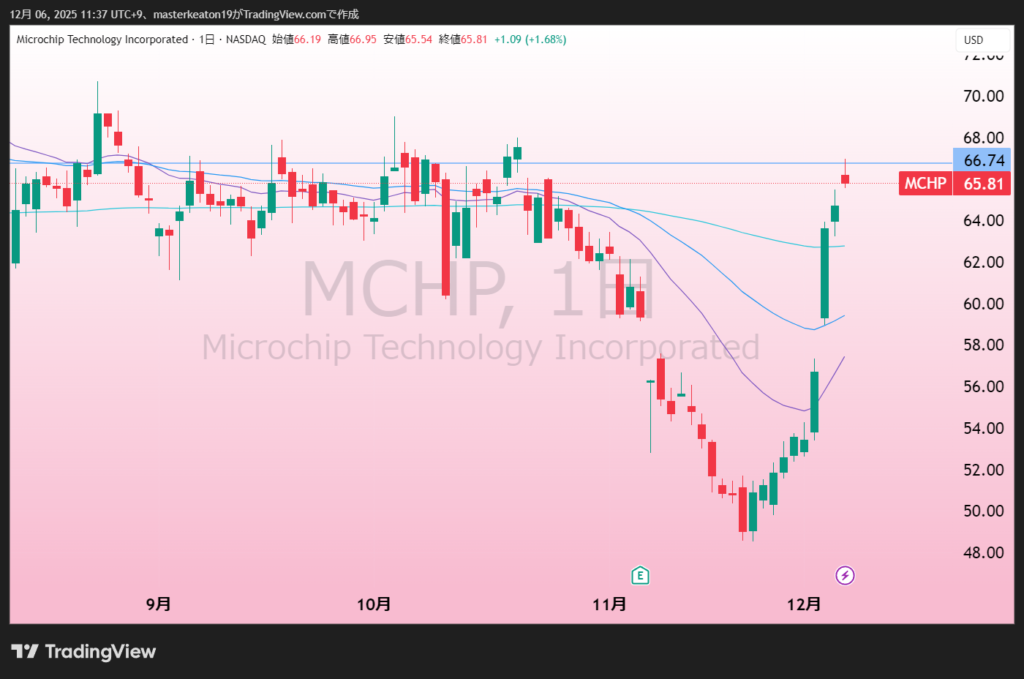 ↓↓マイクロチップ・テクノロジー (MCHP)の株価チャート(日足)
