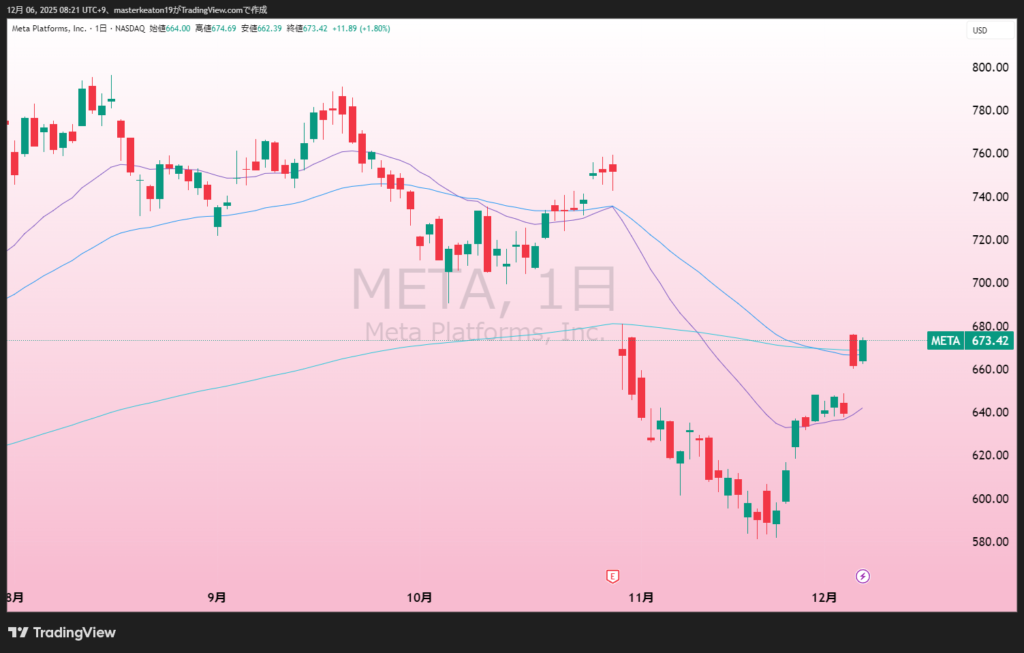 ↓↓メタ(META)の株価チャート(日足)