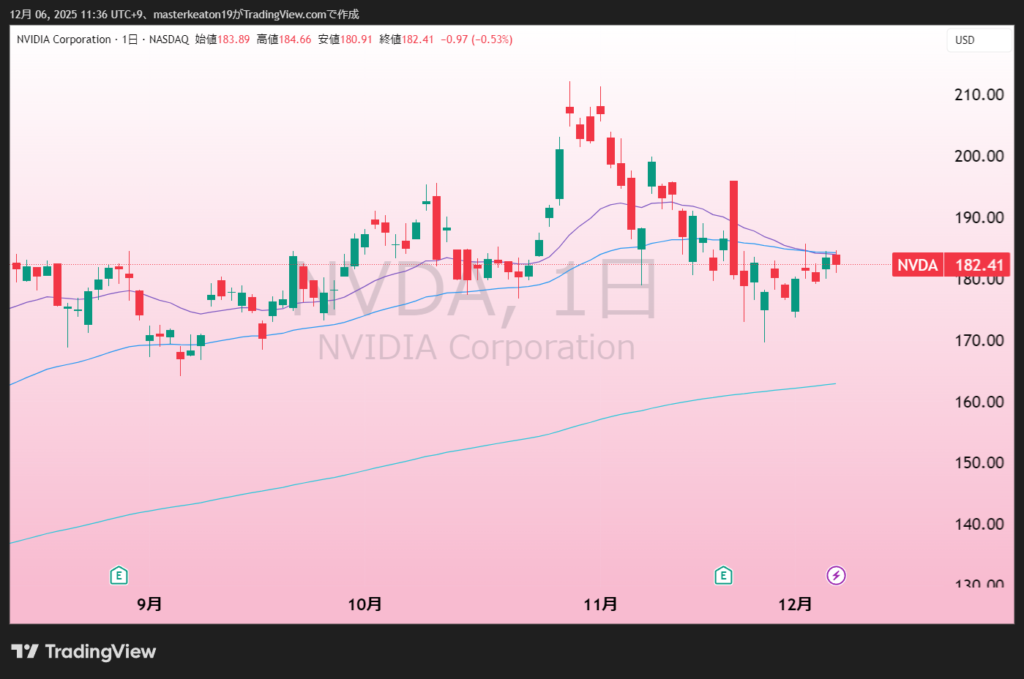 ↓↓エヌビディア(NVDA)の株価チャート(日足)