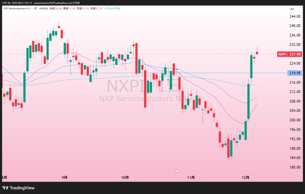 ↓↓NXPセミコンダクタ(NXPI)の株価チャート(日足)