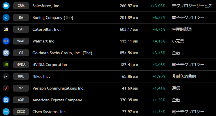 ダウ 週間上昇ランキングトップ10