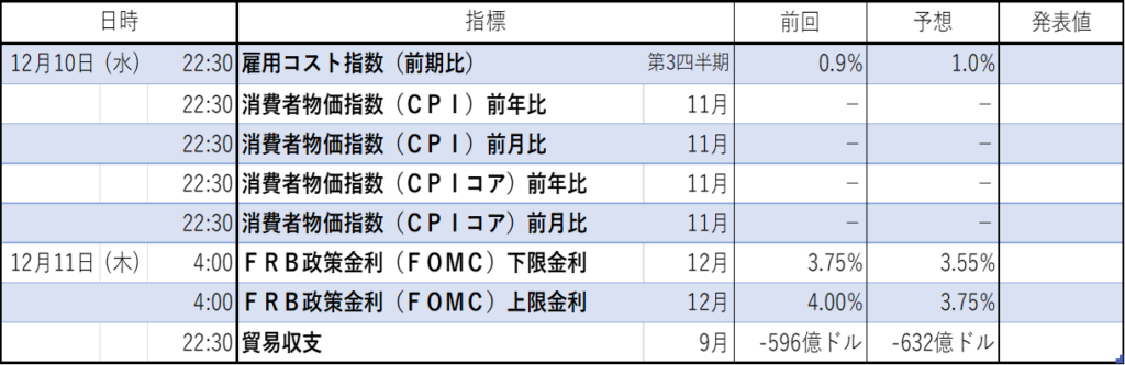 12月に入り、投資家はポジション整理ということで利益確定売りが進むなかでも、株価は堅調だったような気がします。来週はいよいよ米連邦公開市場委員会(FOMC)が開催、政策金利の発表とパウエル議長の講演があります。