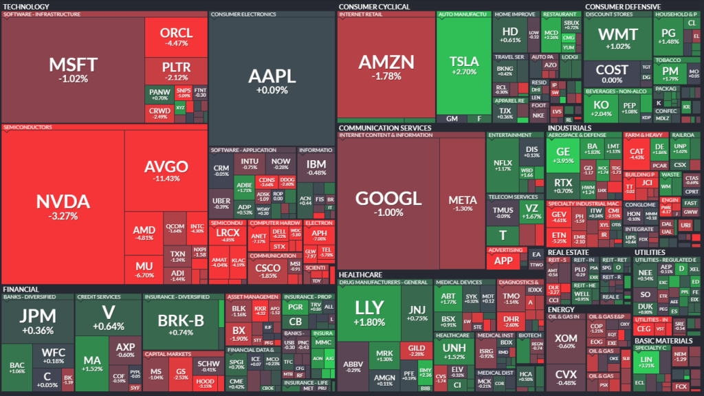 オラクルとブロードコムの2馬力でハイテクセクターは真っ赤な海と化しました。