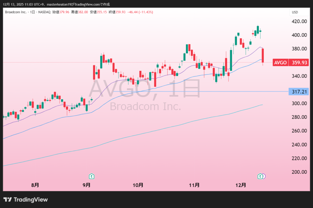 ↓↓ブロードコム(AVGO)の株価チャート(日足)