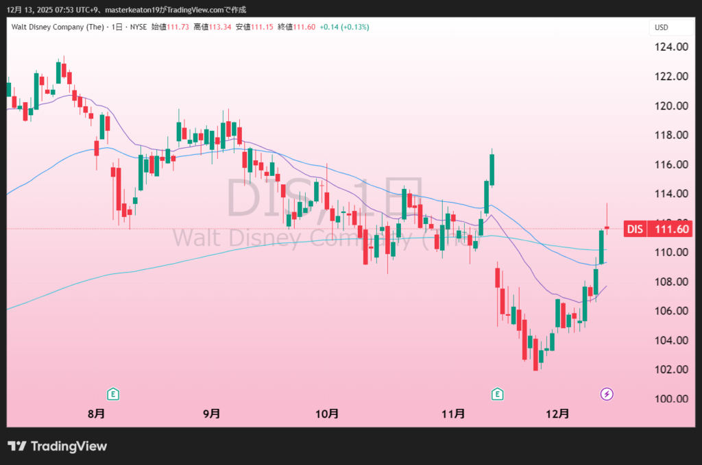 ↓↓ディズニー(DIS)の株価チャート(日足)