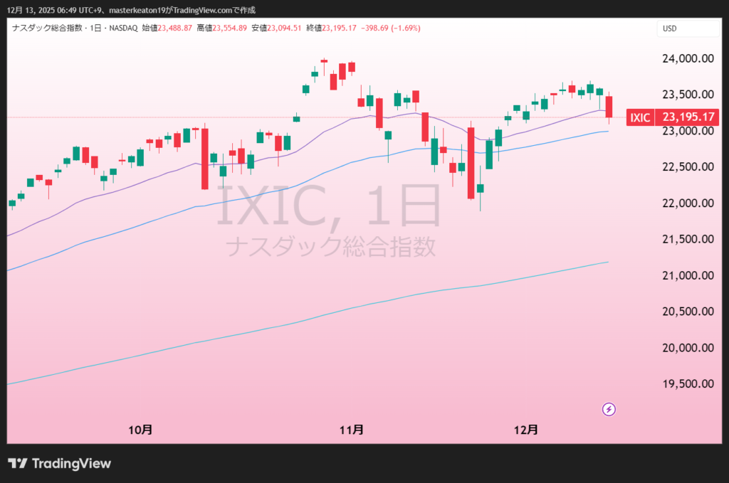 週末最後の最後でがっつり下落です。50日線までは下がりませんでしたが、週末ということもありまあまあの下げでした。