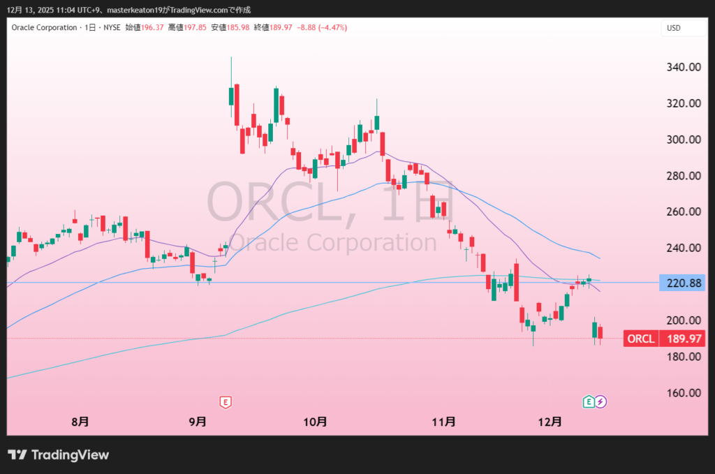 ↓↓オラクル(ORCL)の株価チャート(日足)