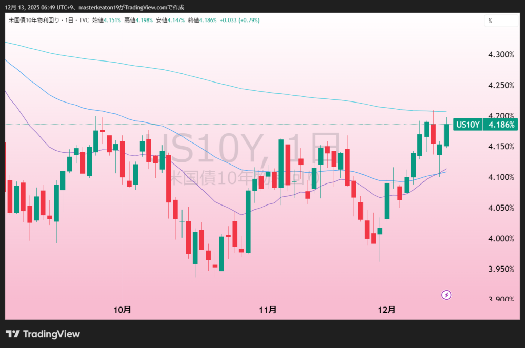 今週、FOMCで利下げしたにもかかわらず、なかなかさがりません。