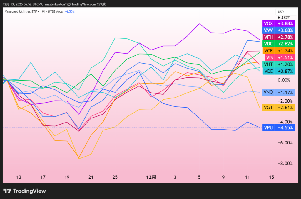 下図をご覧下さい。1か月のセクター毎の株価指数の推移です。