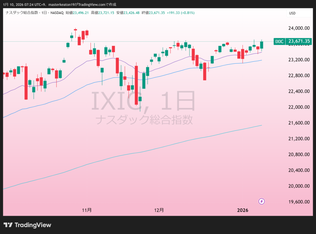 - ナスダックが+1.9%(23671.35)
