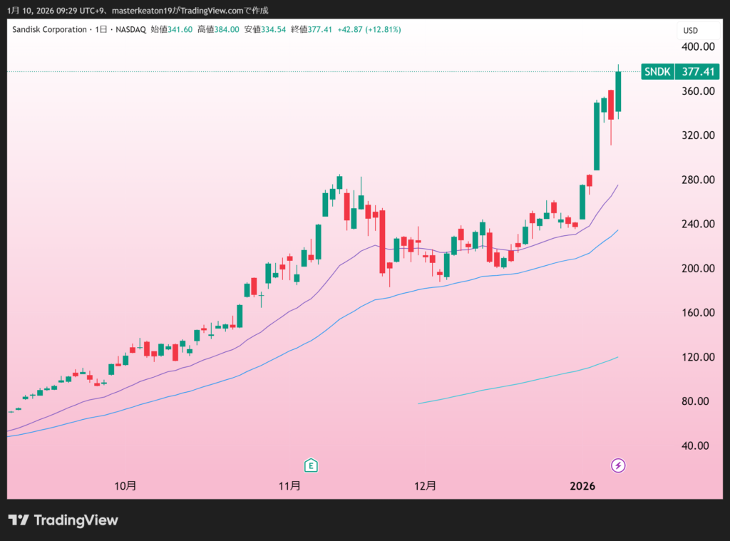 ↓↓サンディスク(SNDK)の株価チャート(日足)