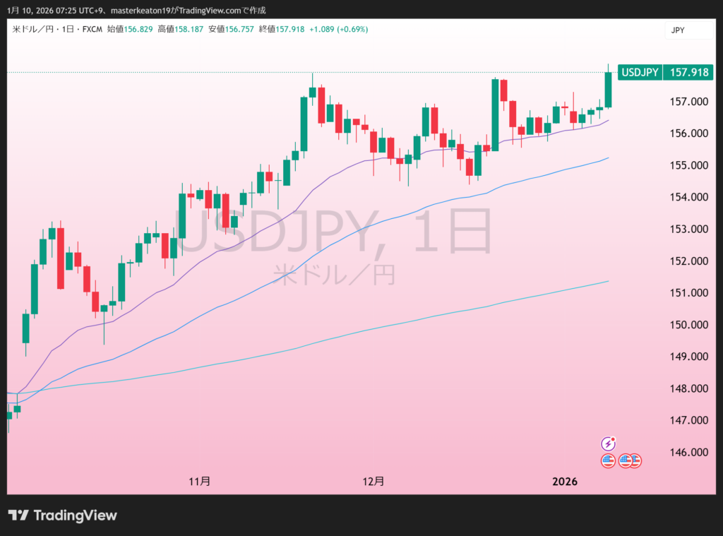 157.92円/ドルと先週から1円以上も上昇です。