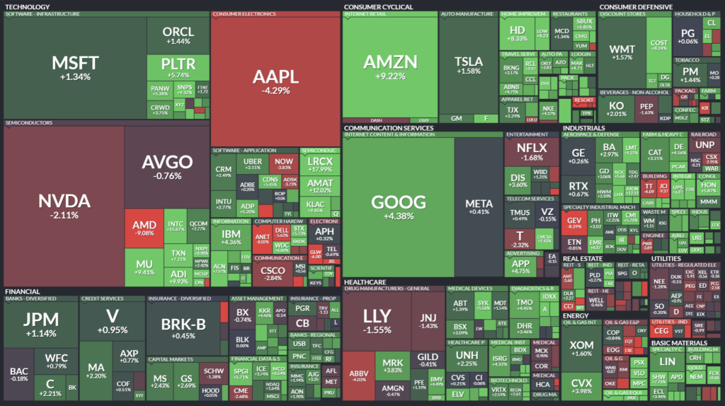 上昇1位のアマゾン(AMZN)は生成AIを使った音声アシスタント「アレクサプラス」のウェブサイト版などを発表したことで上昇しました。