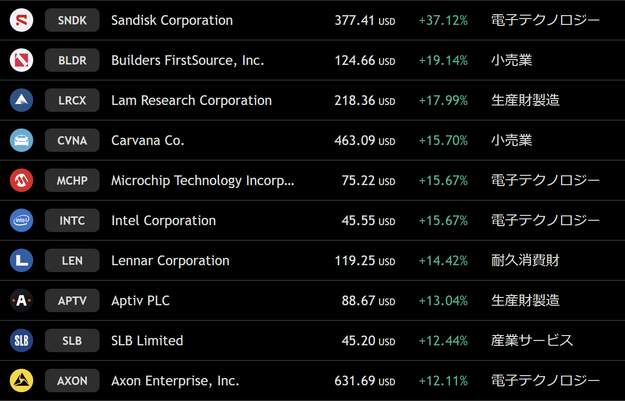 上昇率トップは先週2位のサンディスク(SNDK)でした。