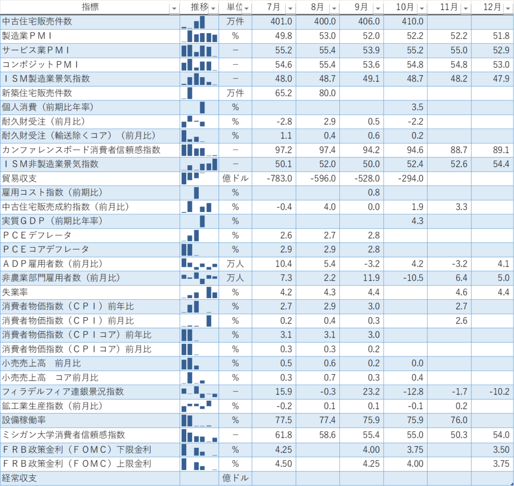 過去の指標からながめていくとなんとなく米経済全体の流れが見え、最新ニュースの意味がより深く理解できるようになります。