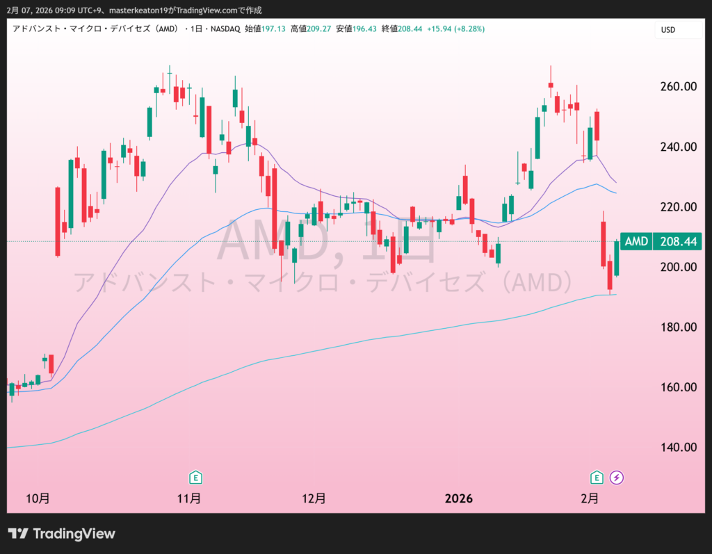 ↓↓アドバンスト・マイクロ・デバイセズ(AMD)の株価チャート(日足)
