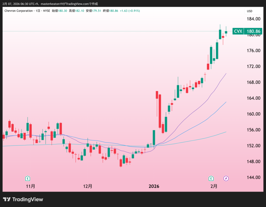 ↓↓シェブロン(CVX)の株価チャート(日足)