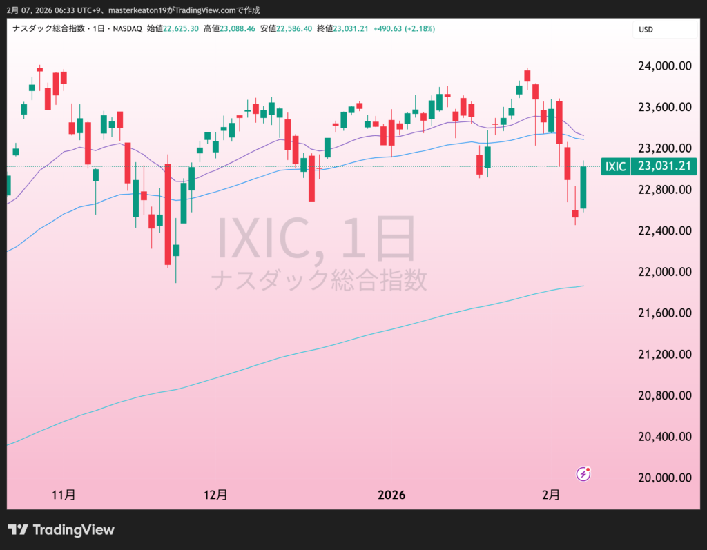 • ナスダックが-1.8%(23031.21)