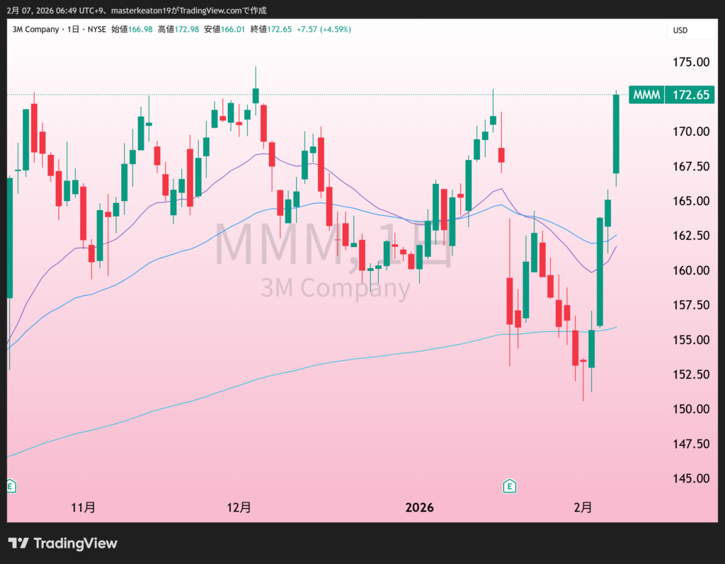 ↓↓3Mの株価チャート(日足)
