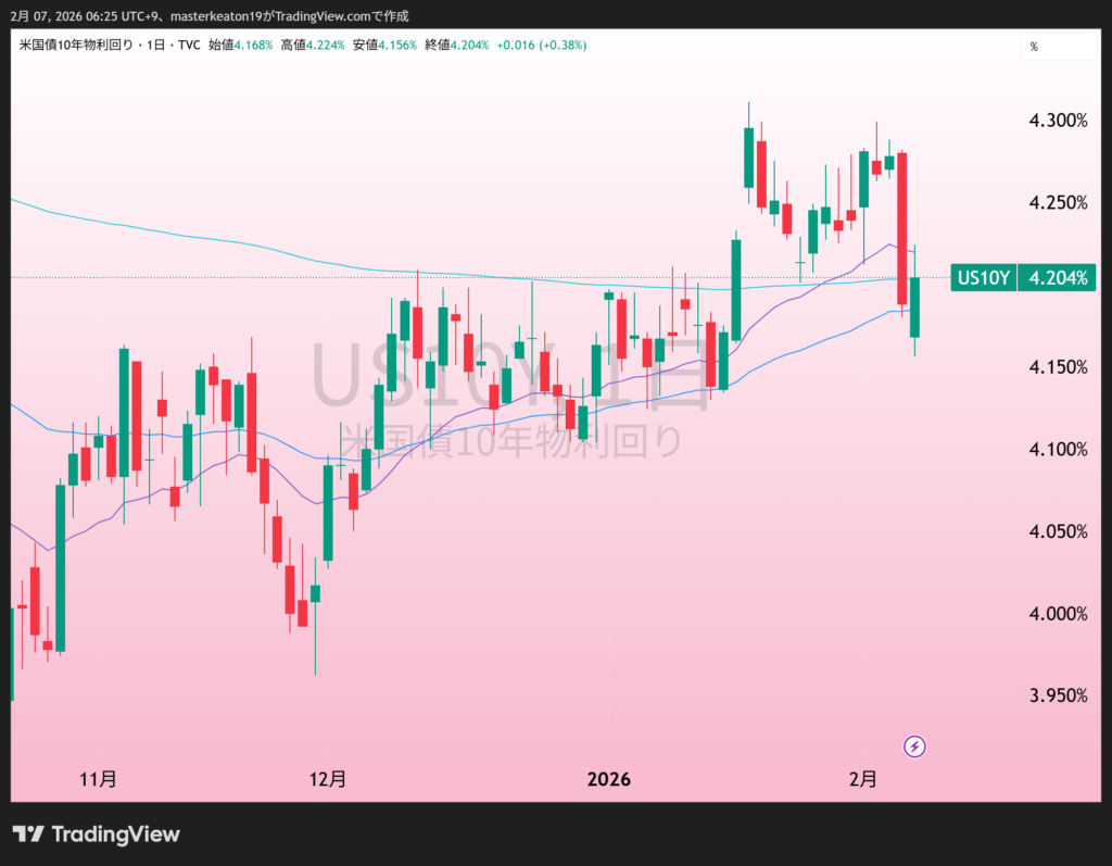 AMDやアルファベット(GOOGL)などハイテク株が売られましたが、米国株、金融はいたって正常かつ強靭であり、ウォーシュ氏がFRB議長となるとさらに米国経済は強くなり、米国株はこれまでどおり右肩上がりを続け恩恵を受けることでしょう。さらにいうと、日本円はさらにこれから弱くなりますので今のうちにドルへ逃げておくことをお勧めいたします。